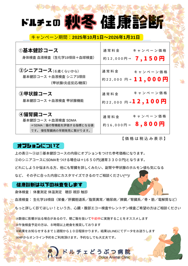 ドルチェでは今年も秋冬健診キャンペーンを実施します。